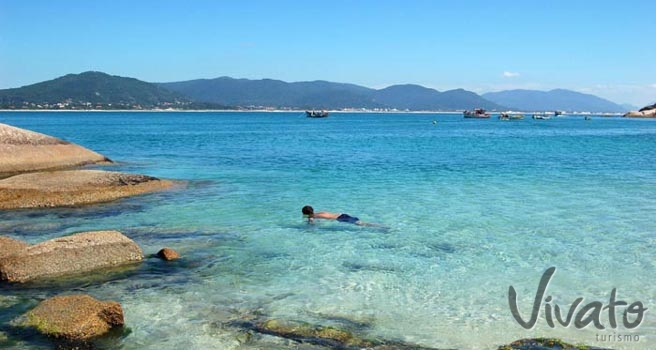 Tour Ilha do Campeche: travessia de barco, 4h de permanência e retorno via Matadeiro e Armação. Reserve com Vivato Turismo.
