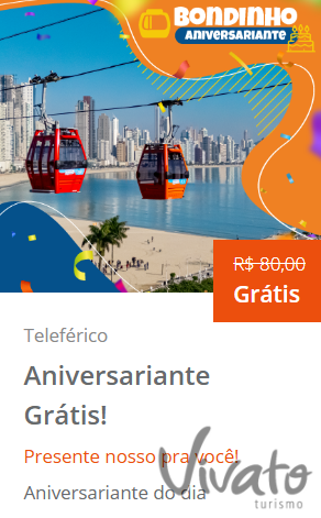Aniversariante do dia tem entrada gratuita no bondinho do Parque Unipraias Camboriú. Celebre com conforto e vista incrível com Vivato Turismo.