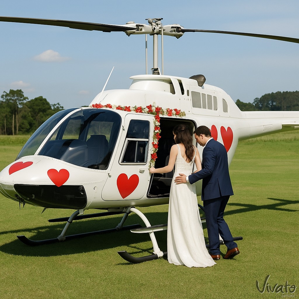 Táxi aéreo exclusivo para casamentos e eventos em SC e PR. Chegada ou partida em Jet Ranger com conforto, impacto e exclusividade Vivato Turismo.