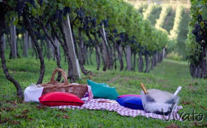 Piquenique na Vinícola Serra do Sol, Gruta de Lourdes e Morro do Campestre. Natureza, fé e gastronomia na Serra Catarinense. Reserve já com Vivato Turismo.
