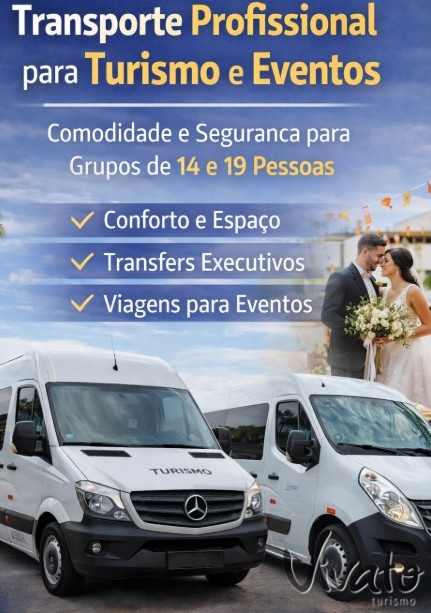 Serviço de transporte exclusivo em van de 14 ou 19 lugares, ideal para grupos que desejam viajar juntos com comodidade e segurança.